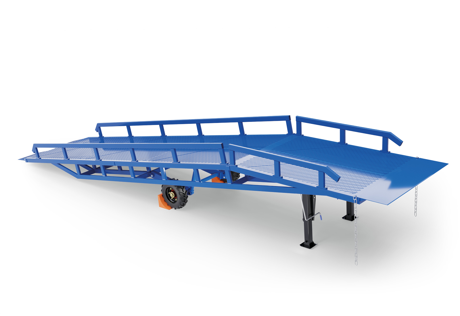 Met een laadvermogen tot 10.000 kg en royale afmetingen van 2.100 mm x 11.800 mm x 1.100 mm is deze oprijplaat uitgerust voor de zwaarste taken. Dankzij de geïntegreerde trekhaak kan de 3.100 kg mobiele oprijplaat voor zwaar gebruik eenvoudig met behulp van een trekker naar de volgende locatie op het terrein worden getransporteerd.
