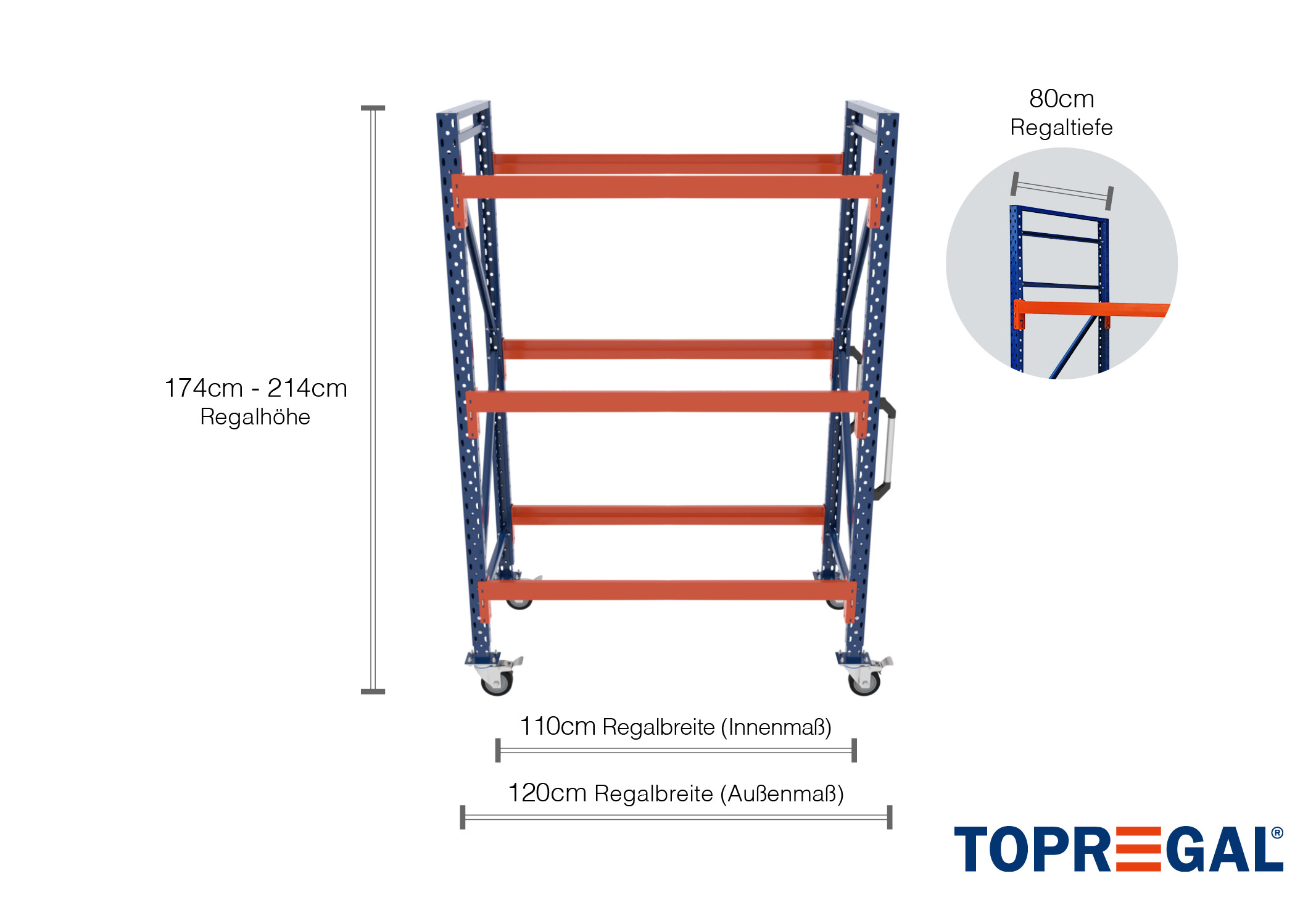1,2 m individuele stelling verrijdbaar IR2000 / 1.740 - 2.140 mm hoog / 80 cm diep / 3 niveaus