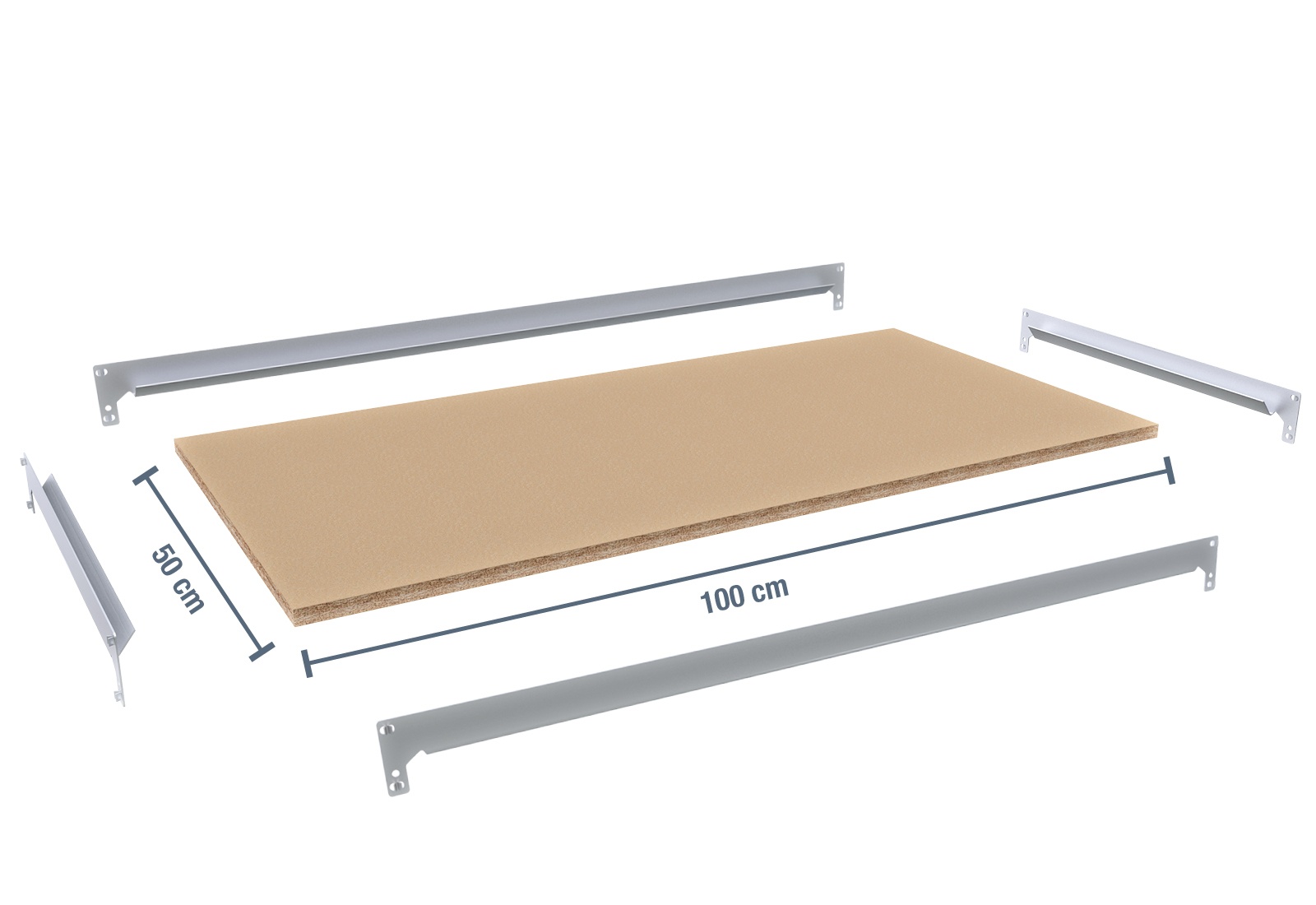 Houten bodem voor bodemstellingen incl. bevestigingsstutten, voor extra opbergruimte bij een bestaande bodemstelling van TOPREGAL of voor het vervangen van een bestaande bodemstelling. Deze bodemstelling kan worden beladen met 200 kg per niveau met een gelijkmatig verdeelde lading. Deze houten bodem is een 16 mm dikke ruwe spaanplaat, die zichzelf dankzij de speciale constructie van onze bodemstellingtraversen automatisch bevestigt.