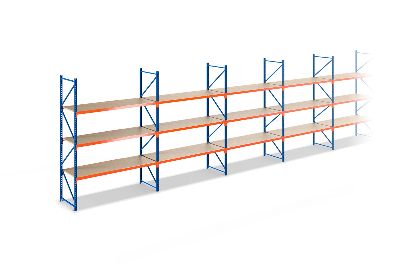 13,7 m magazijnstelling LR2000 / 60 cm diep / 2 m hoog / 3 niveaus / bodem hout