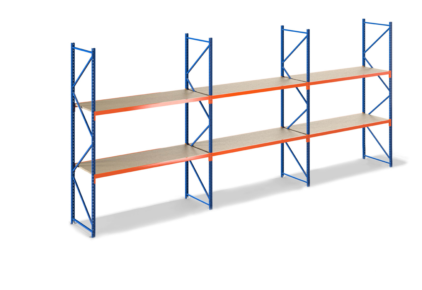 6,9 m magazijnstelling LR2000 / 60 cm diep / 3 m hoog / 2 niveaus / bodem hout