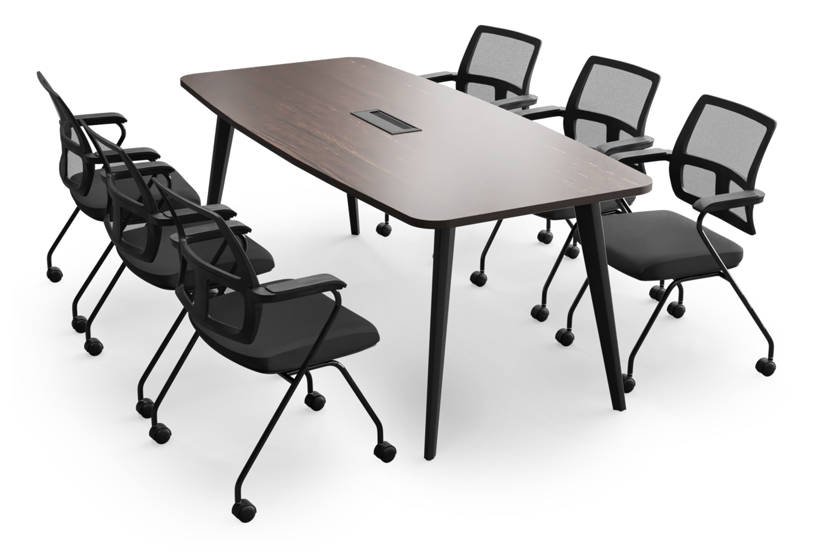 Vergadertafel SOFIA200 Donker + 6 stoelen EMMA